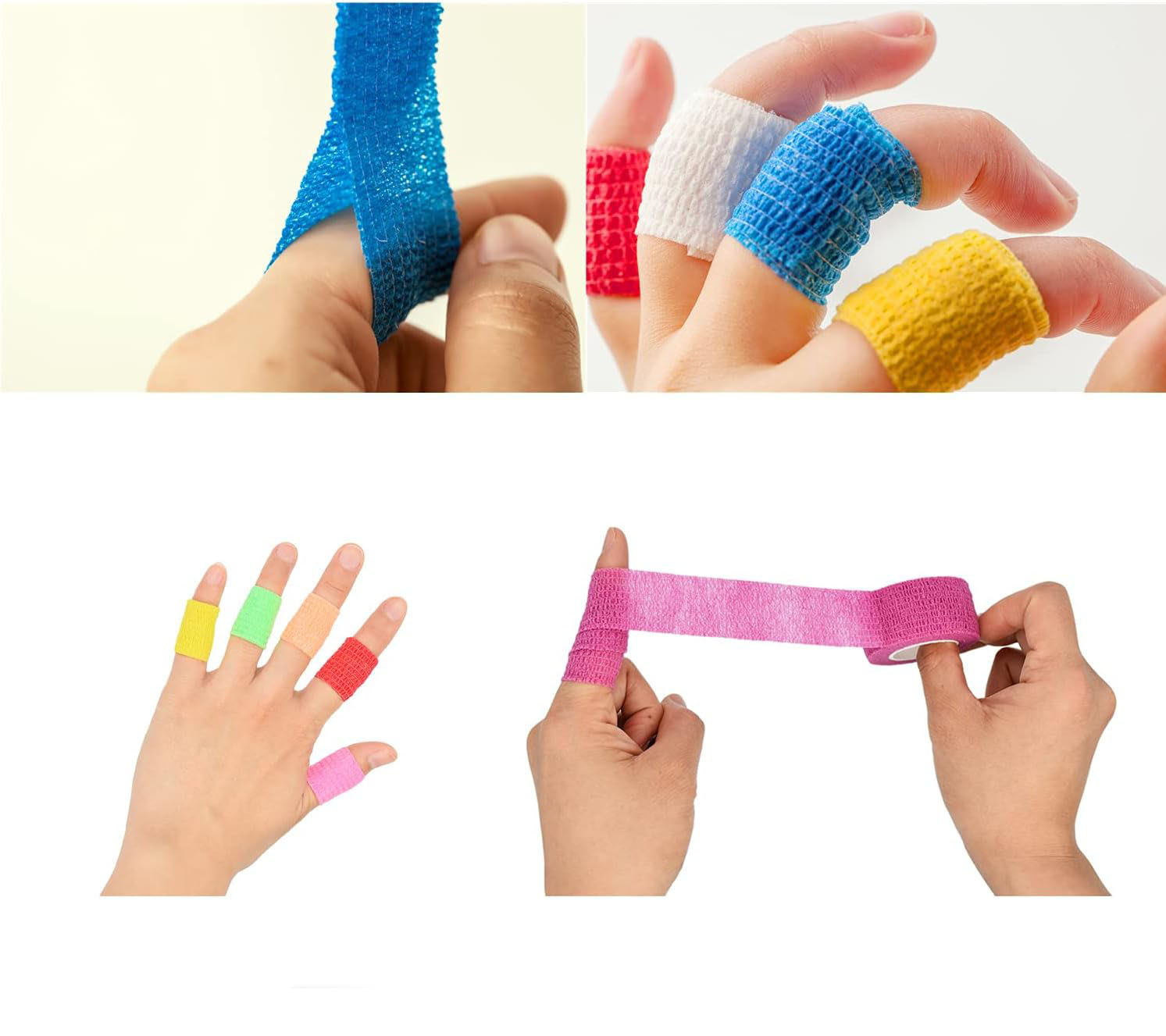 1. Flexibilidad mejorada: confeccionadas con elasticidad, las vendas cohesivas para los dedos se ajustan perfectamente a los contornos del dedo, garantizando un ajuste seguro y cómodo durante todo el día. Los vendajes mantienen su integridad incluso durante el movimiento, brindando protección.